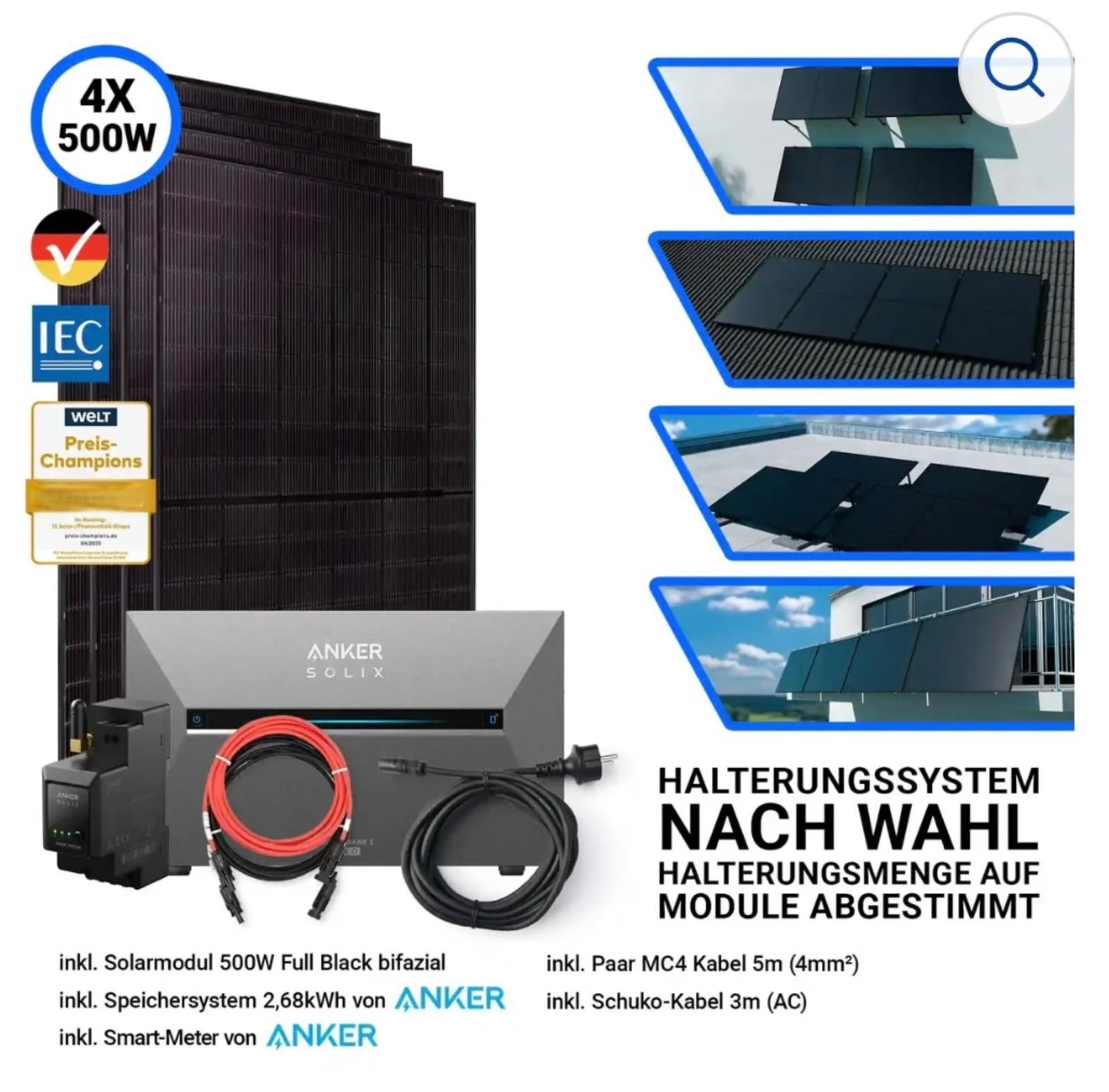 4x Jolywood 500W Full Black bifazial & Anker Solix Solarbank 3 Pro. (Inkl. Montagematerial)